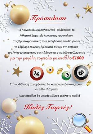 Πρωτοχρονιάτικες Εκδηλώσεις-Τόμπολα Λινούς-Φλάσου 28/12/2019