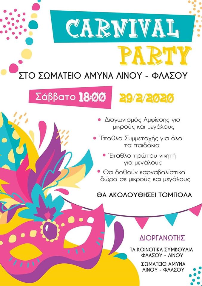 Καρναβαλλίστικο πάρτυ στο σωματείο Άμυνα Λινού-Φλάσου 29/2/2020